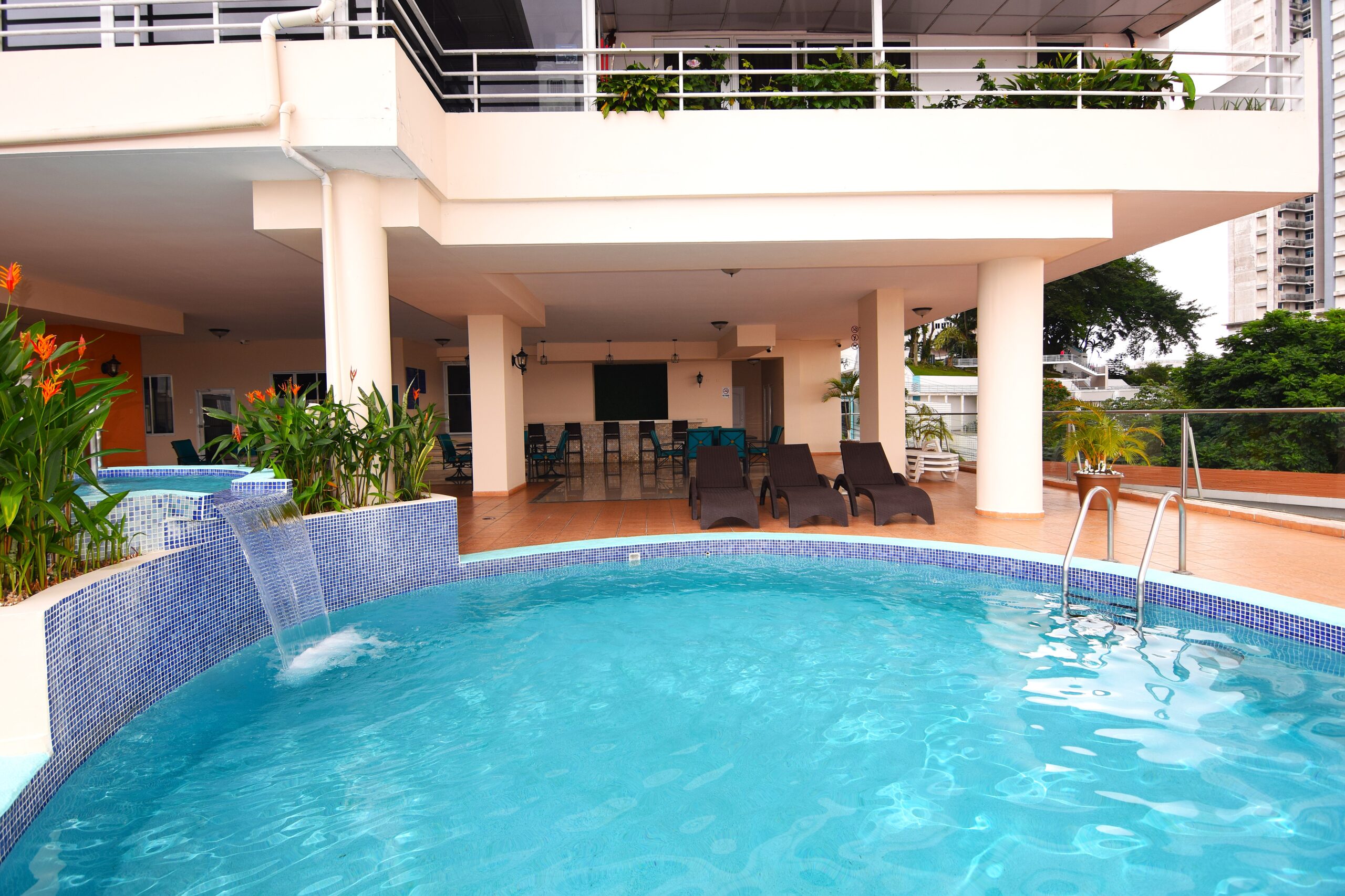 Piscina con mobiliario para eventos