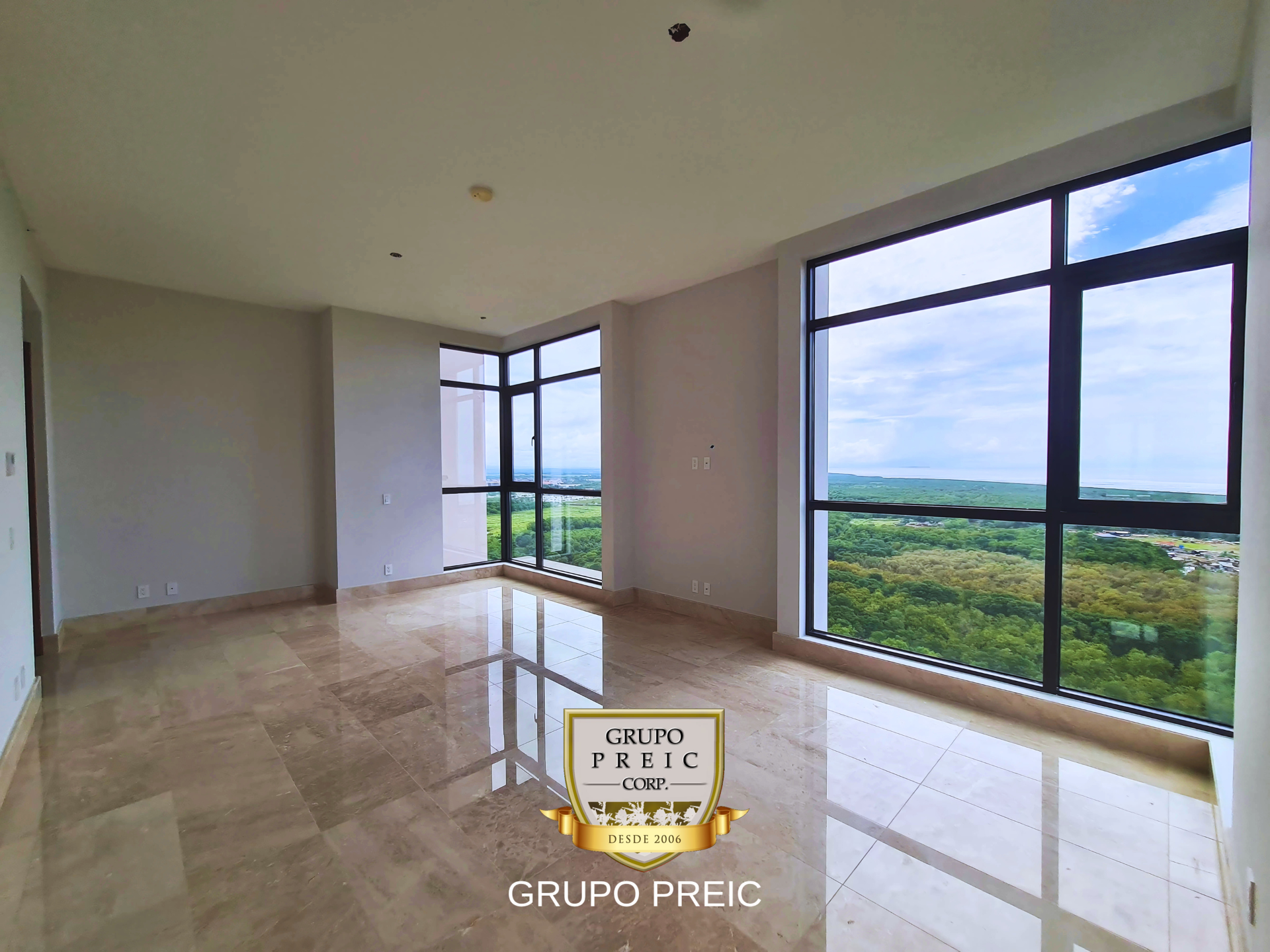 Acabados de lujo: mármol biselado en todo el apartamento, grifería alemana, puertas y clósets italianos, altura libre de 3.5 m.