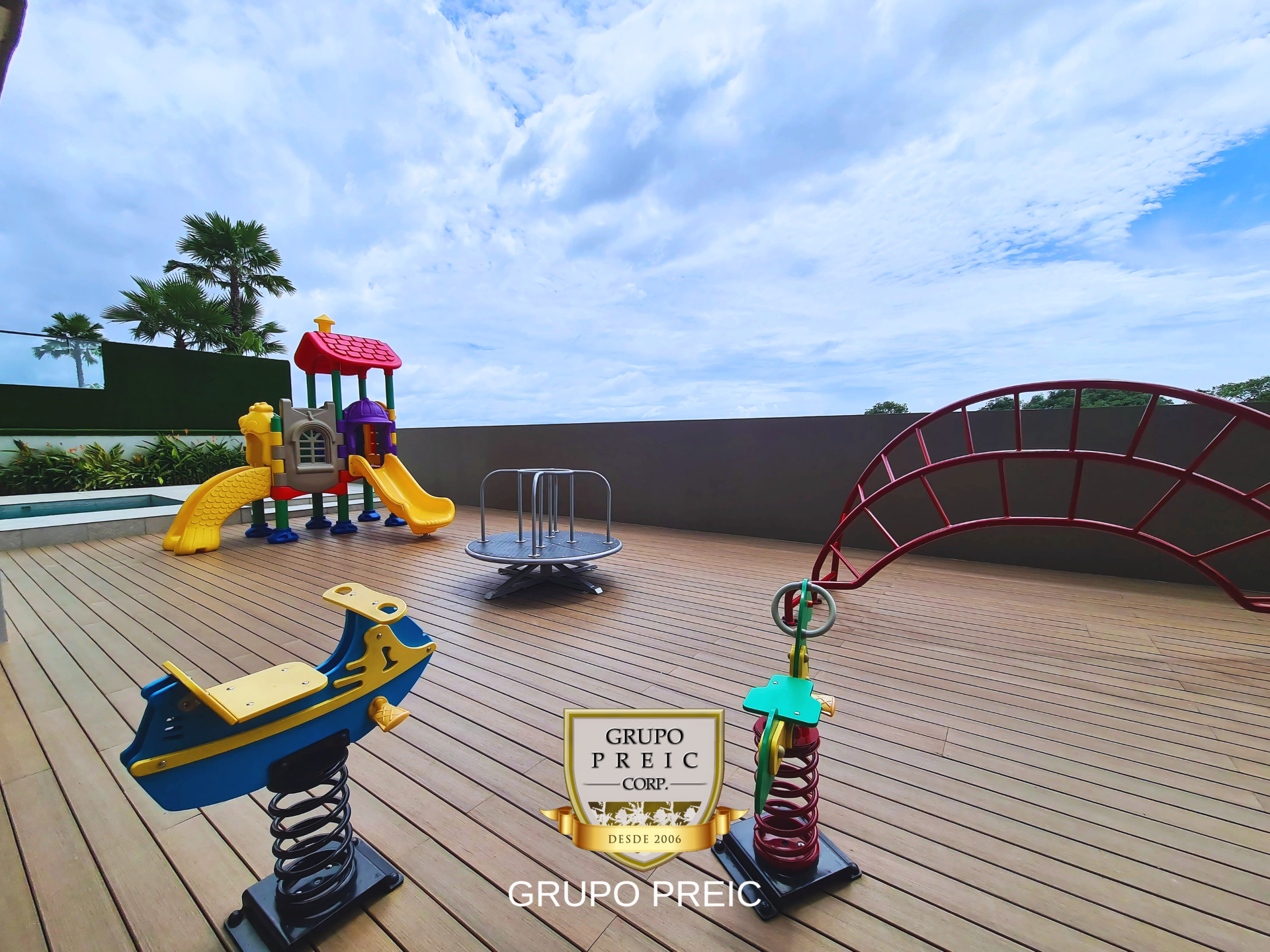 3 piscinas, gimnasio, salón de juegos, parque infantil, salón de eventos y vistas espectaculares desde el rooftop.