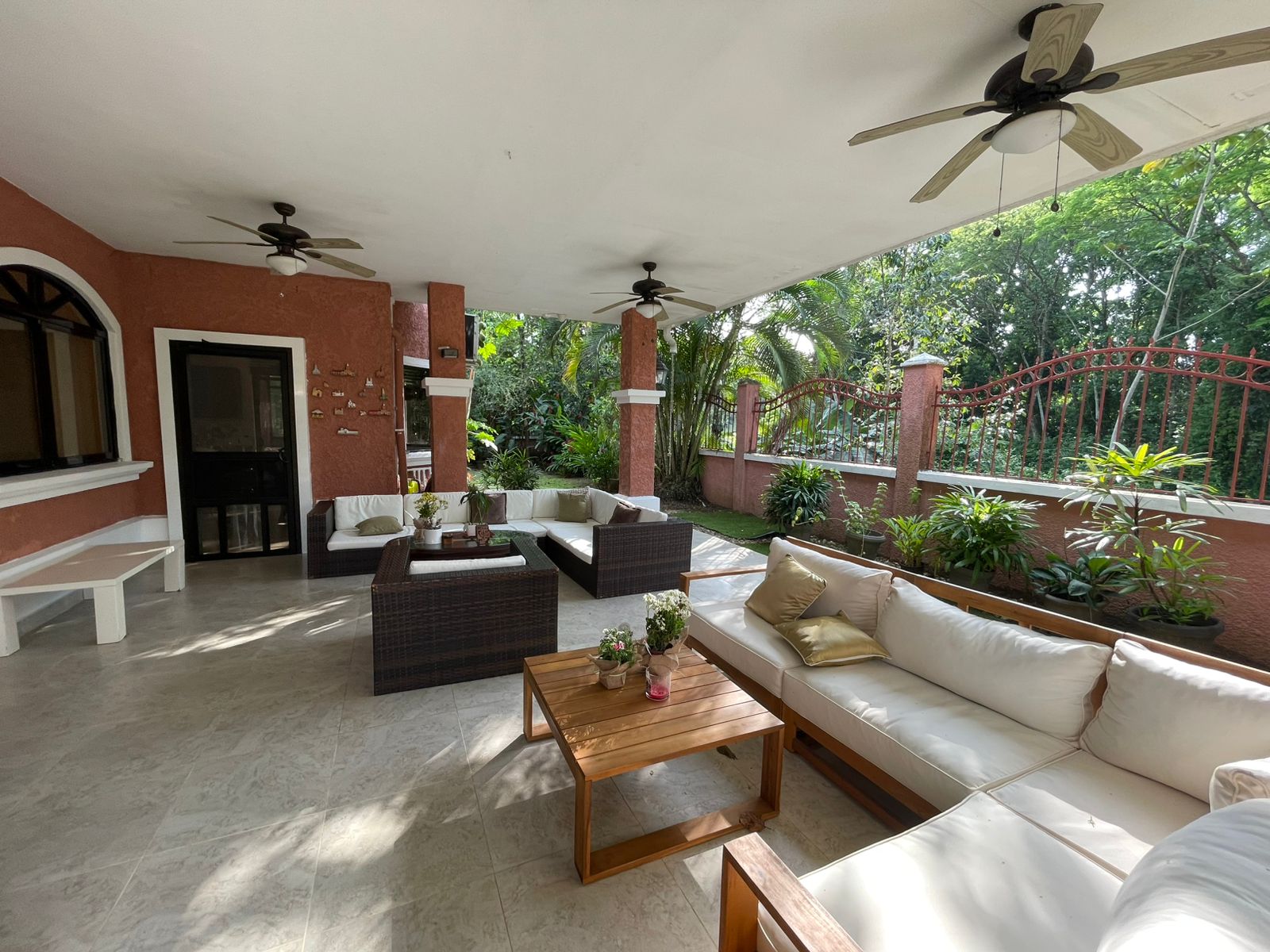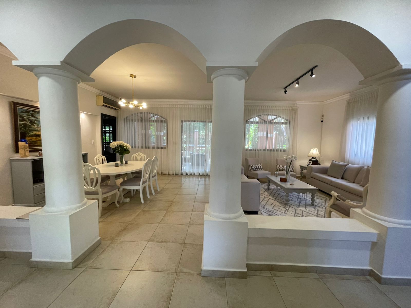 La casa tiene aires acondicionados en todas sus áreas, sistemas de seguridad dentro de la casa, y un sistema de alarma en toda la casa.
