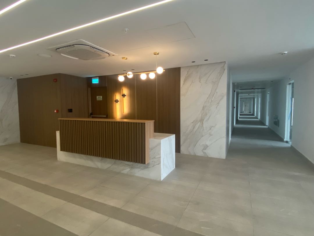 El edificio cuenta con recepción en el piso y una amplia sala de espera.